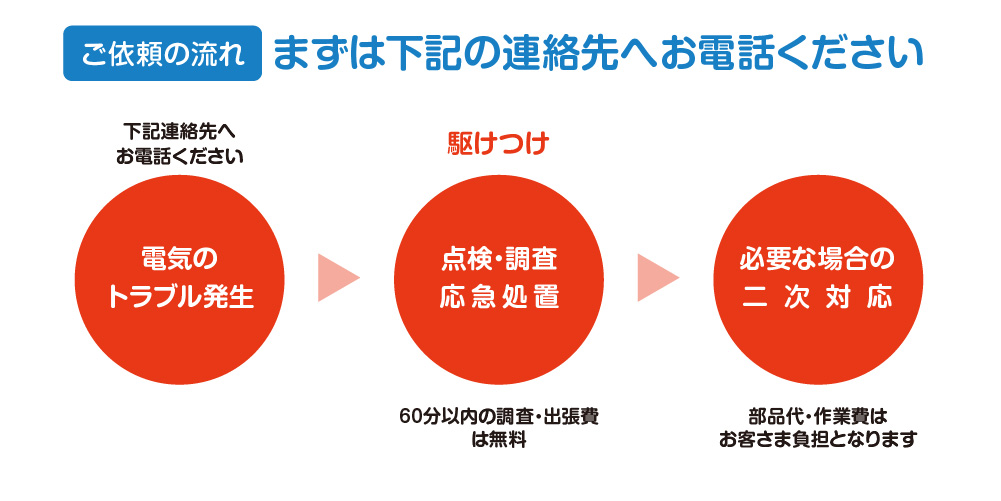 - 天候・交通事情・作業状況等により訪問に時間がかかる場合や、当日中に出向できない場合があります。また、栃木県、茨城県、埼玉県、静岡県(富士川以東)の一部地域において、土日祝日、年末年始および平日夜間にお電話いただいた場合は、翌営業日以降の訪問となります。詳しくは下記「利用規約」をご覧ください。