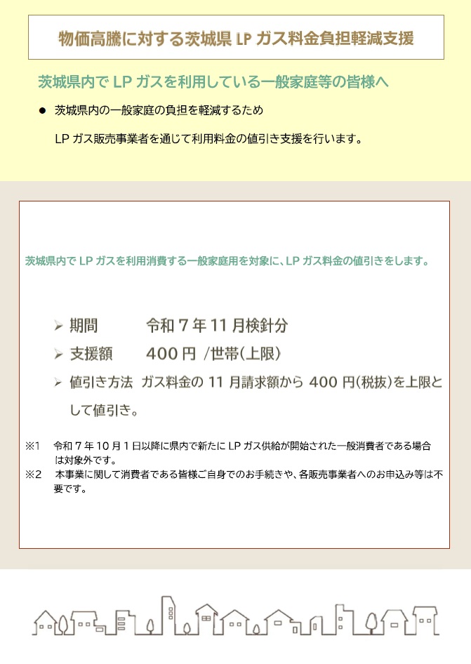 令和7年度茨城県LPガス料金負担軽減支援事業のお知らせ 2025/10/17