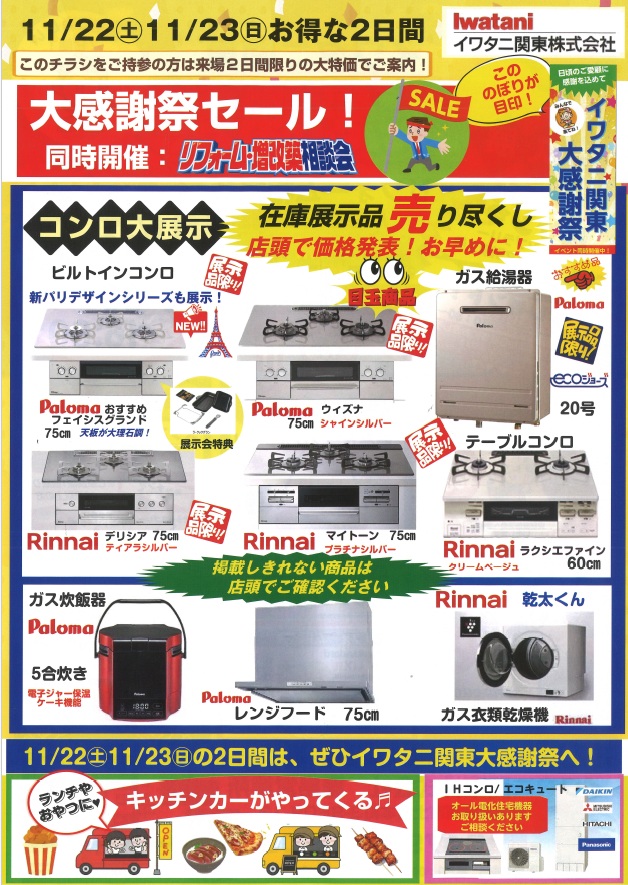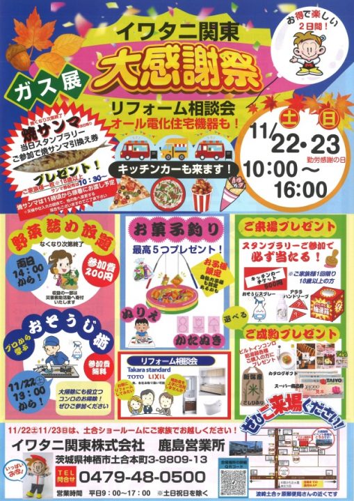 - 11/22(土)23(日)大感謝祭開催します!(鹿島営業所)