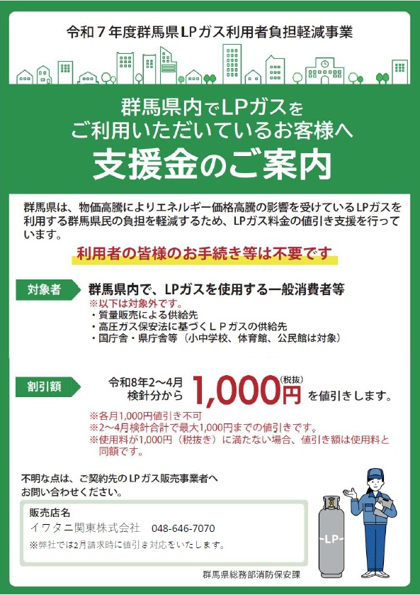 • 令和7年度群馬県LPガス利用者負担軽減事業のお知らせ 2026/1/22